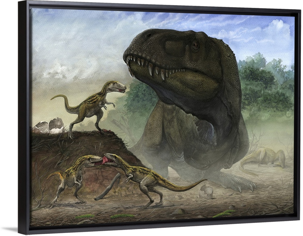 <p>A mother Zhuchengtyrannus magnus with her offspring.</p>
