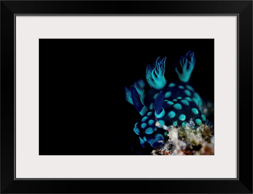 <p>A Nembrotha cristata sea slug eating some sea squirts, Lembeh Strait, indonesia.</p>