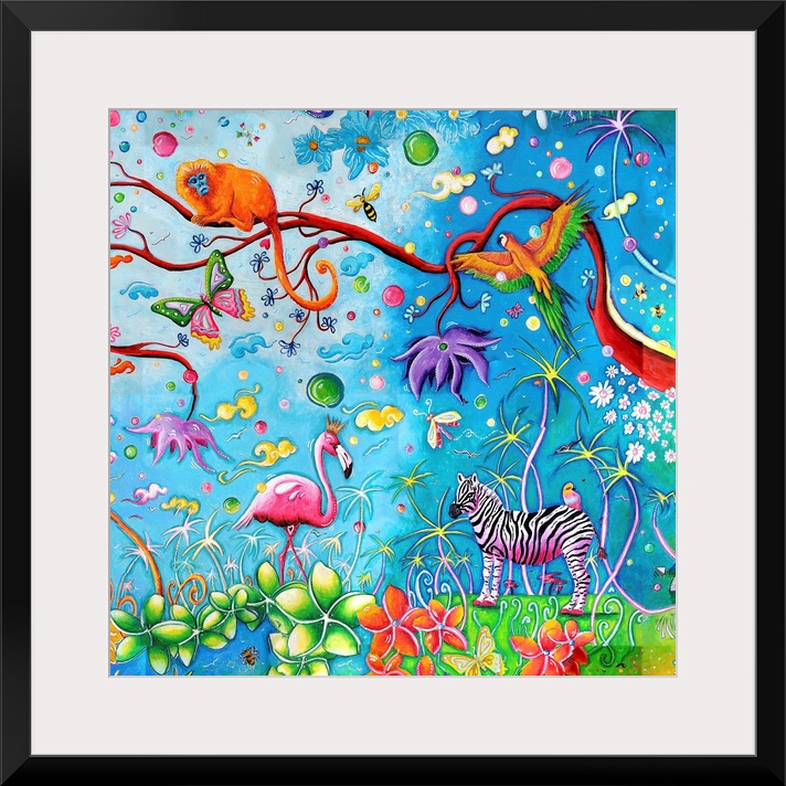 Art Blue Wall Art Contemporary Art Megan Duncanson Landscapes Trees Painting Wildlife Bird Flamingo Tropical Birds Monkey and Ape Zebra
