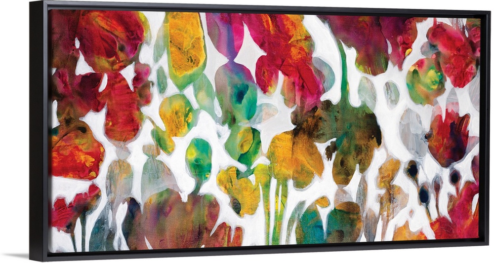 <p>Contemporary panoramic painting of floral silhouettes filled with watercolor.</p>