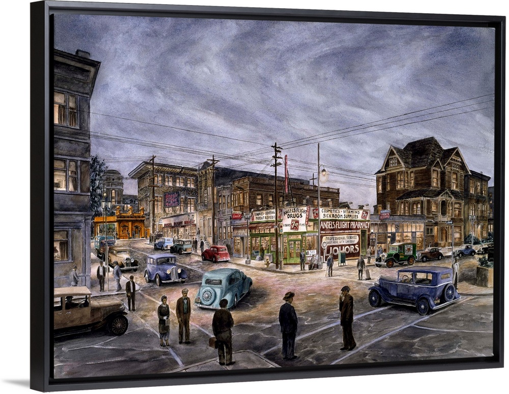 <p>Contemporary painting of a bustling city street.</p>