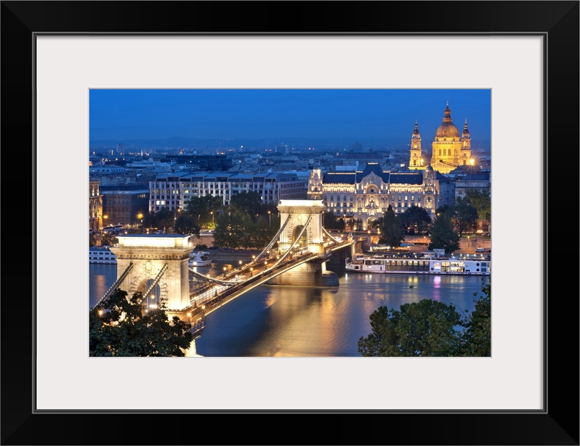 <p>A night view of Szechenyi Chain Bridge over the Danube River in Budapest.</p>
