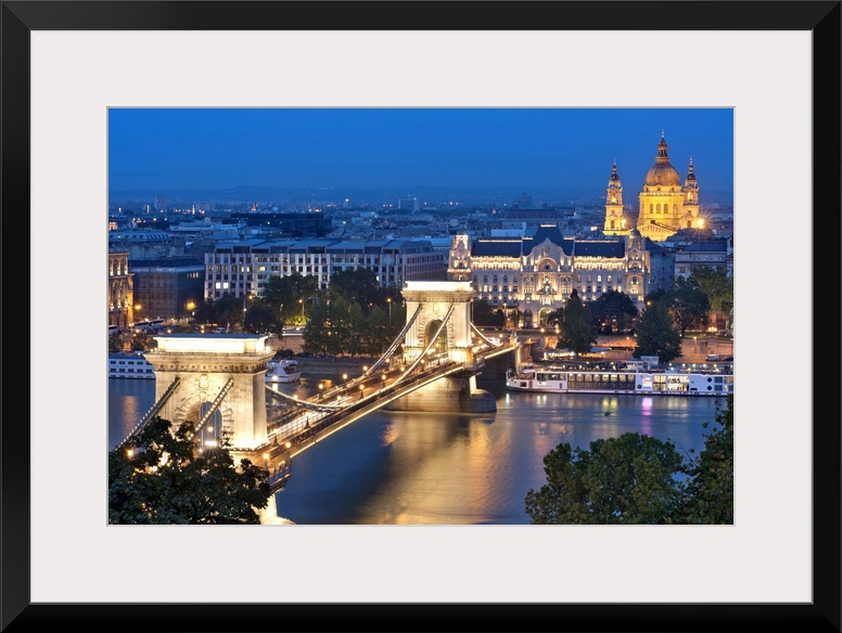 <p>A night view of Szechenyi Chain Bridge over the Danube River in Budapest.</p>