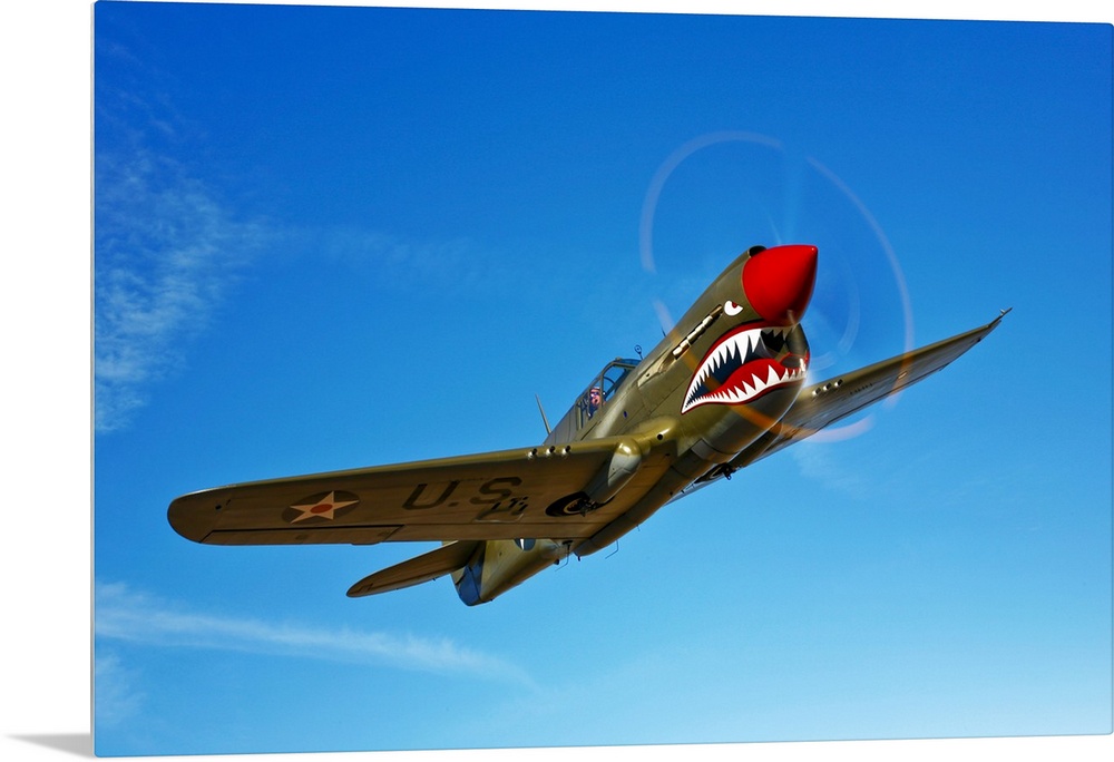<p>A P-40E Warhawk in flight near Chino, California.</p>