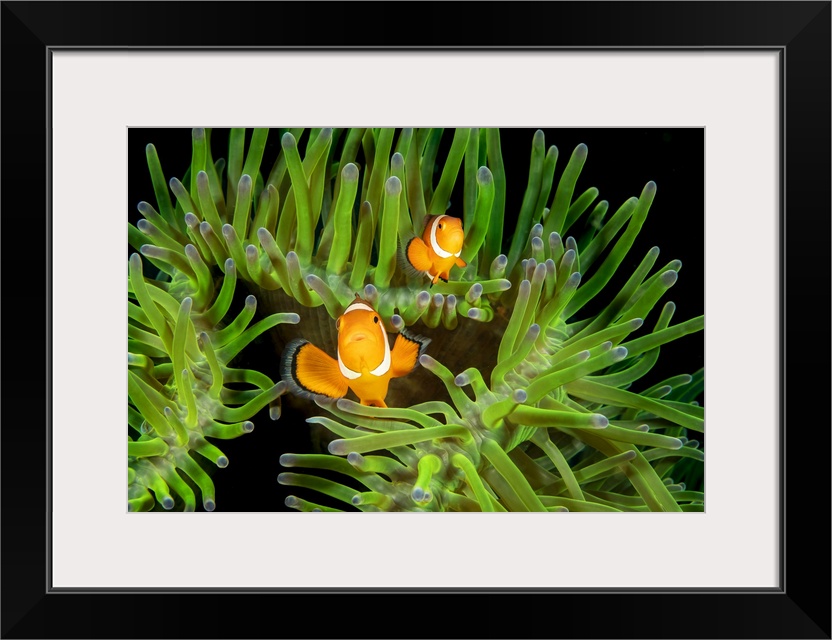 <p>A pair of clown anemonefish (Amphiprion percula) in anemone (Heteractis magnifica); Philippines.</p>