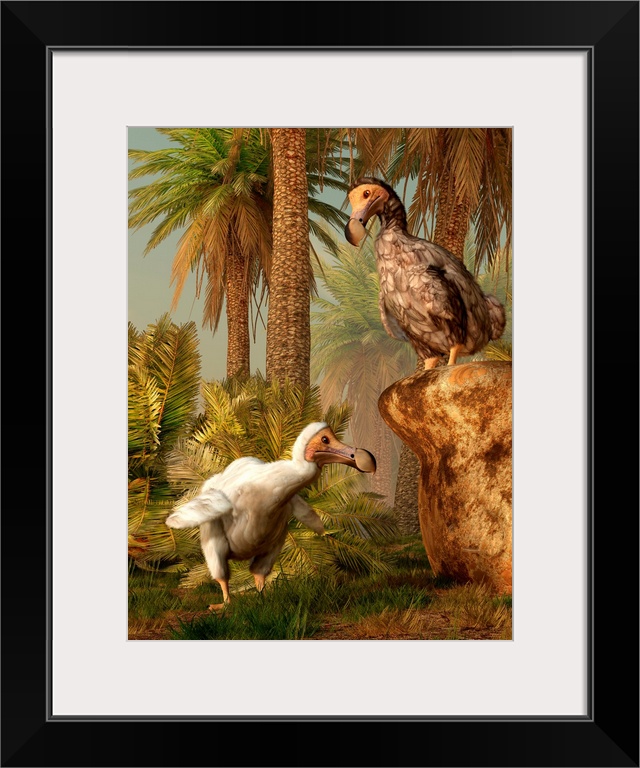 <p>A pair of Dodo birds who have left the confines of the jungle and wandered closer to the beach to play a game of hide-and-seek. Note: these two are apparently not very good at the game.</p>