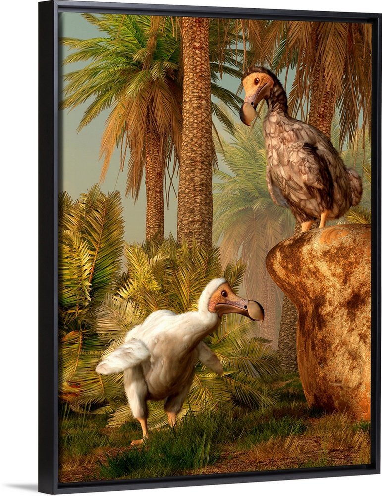 <p>A pair of Dodo birds who have left the confines of the jungle and wandered closer to the beach to play a game of hide-and-seek. Note: these two are apparently not very good at the game.</p>
