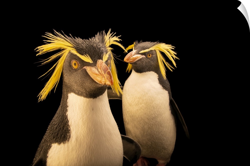 <p>A pair of endangered Northern rockhopper penguins (Eudyptes moseleyi) at the Calgary Zoois Breeding Center.</p>