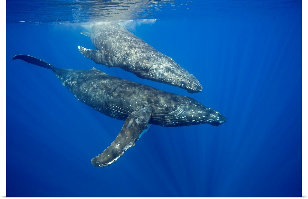 <p>A pair of humpback whales (Megaptera novaeangliae) just below the surface. Hawaii, United States of America.</p>
