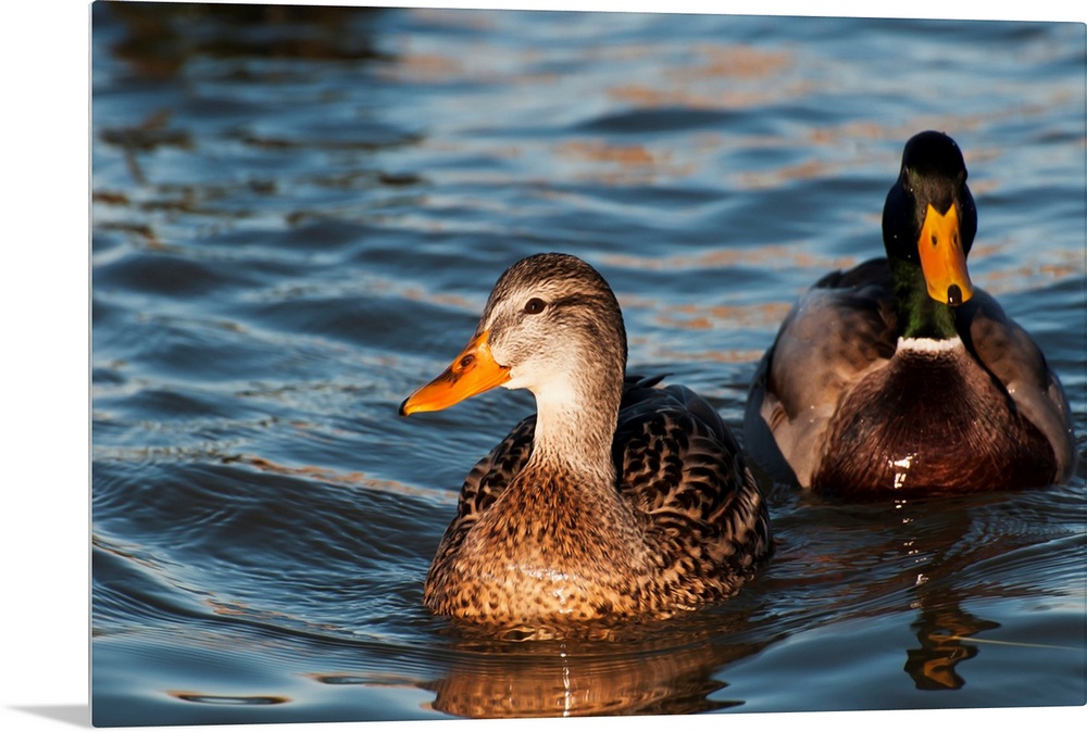 <p>A Pair Of Mallards Swim In The Columbia River, Astoria, Oregon</p>