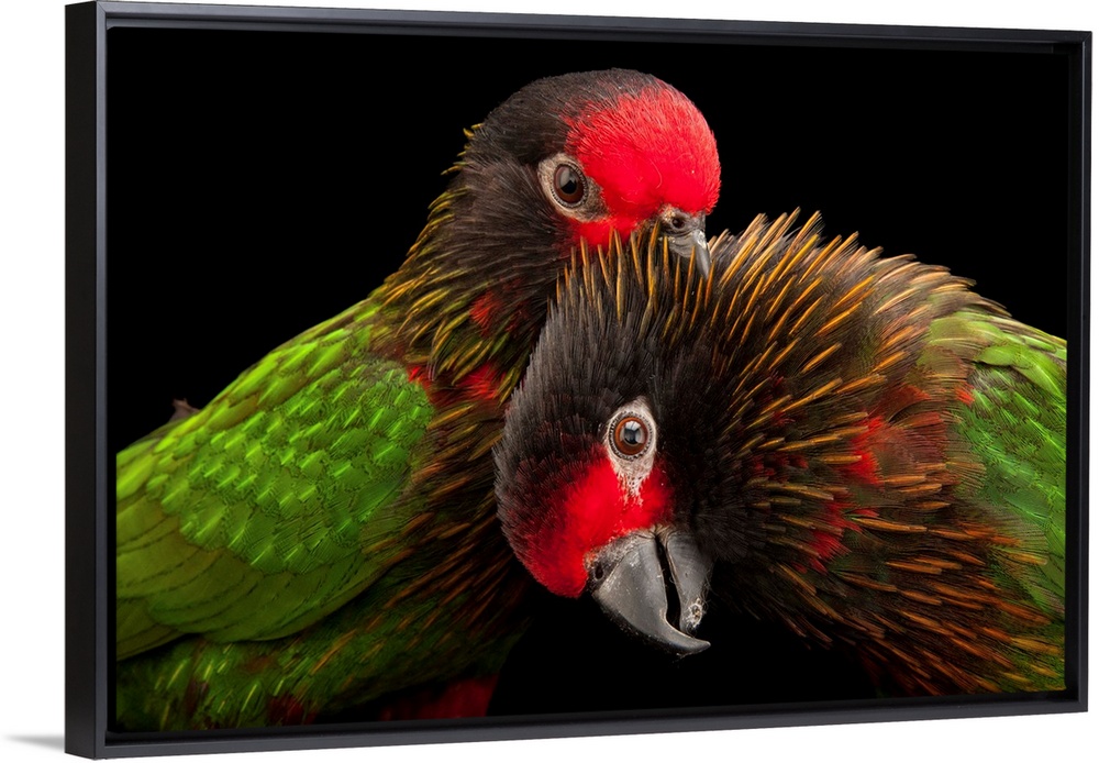 <p>A pair of yellow-streaked lories, Chalcopsitta sintillata, at the Omaha Henry Doorly Zoo.</p>