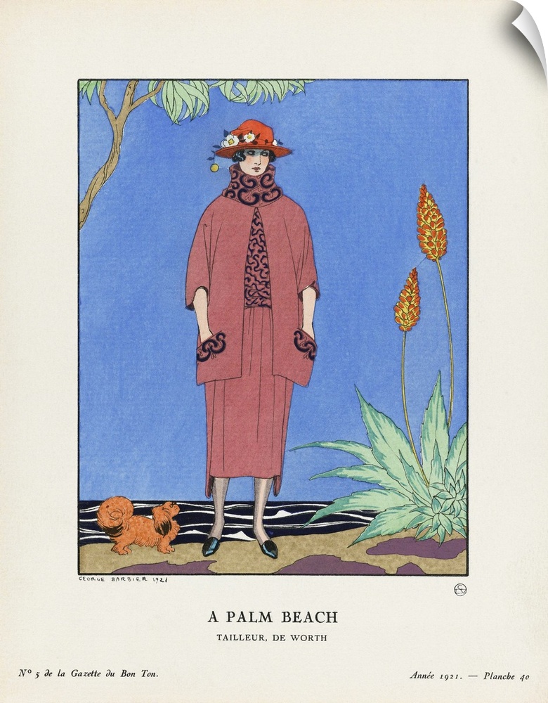 <p>A Palm Beach. At Palm Beach. (Florida, USA). Tailleur de Worth. House of Worth. Art-deco fashion illustration by French artist George Barbier, 1882-1932. The work was created for the Gazette du Bon Ton, a Parisian fashion magazine published between 1912-1915 and 1919-1925.</p>