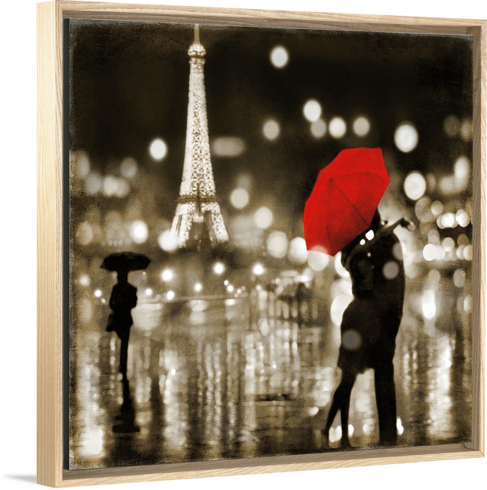 <p>Square art with a couple kissing under a red umbrella and the Eiffel Tower lit up in the background.</p>