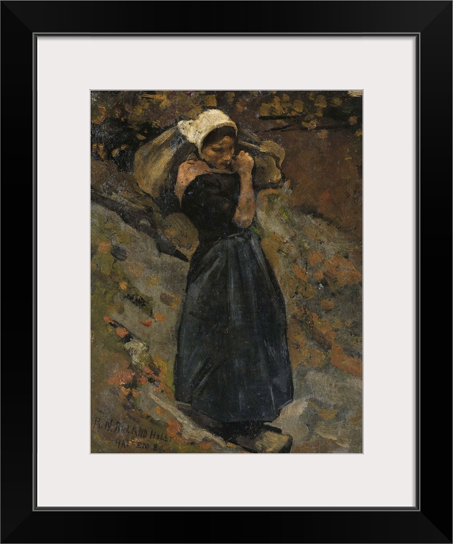 <p>A Peasant Woman Carrying a Sack, by Richard Roland Holst, 1889. Dutch painting, oil on canvas. She wears a white cap and clogs, as she carries a bag over her shoulder.</p>