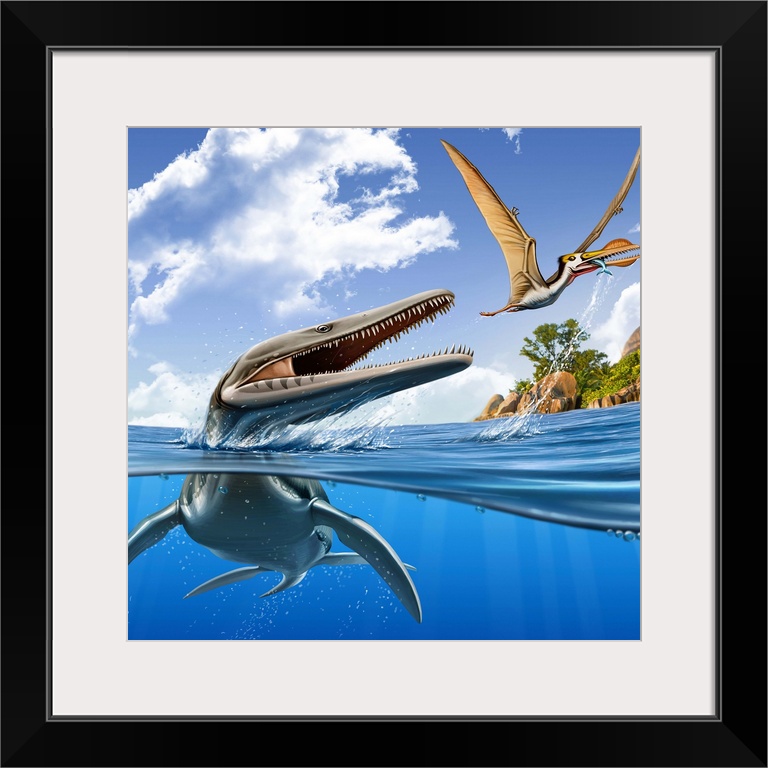 <p>A Plesiopleurodon jumps out of the water, attacking an Ornithocheirus.</p>