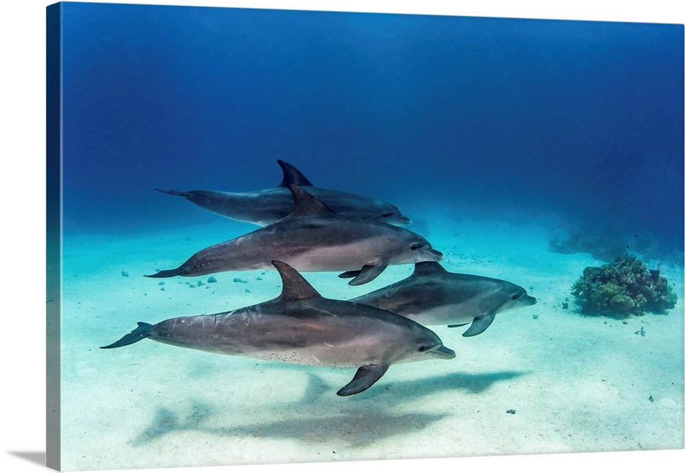 <p>A pod of four dolphins swim playfully in the Red Sea.</p>