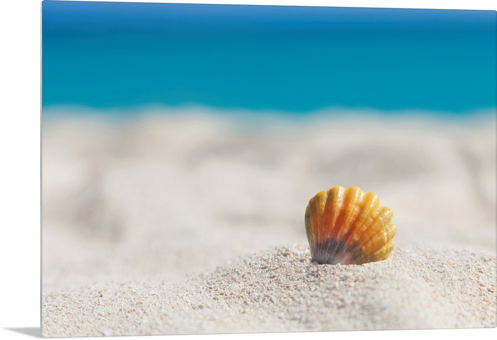 <p>A rare rainbow color Hawaiian Sunrise Scallop Seashell, also known as Pecten Langfordi, in the sand at the beach at sunrise; Honolulu, Oahu Hawaii, United States of America</p>