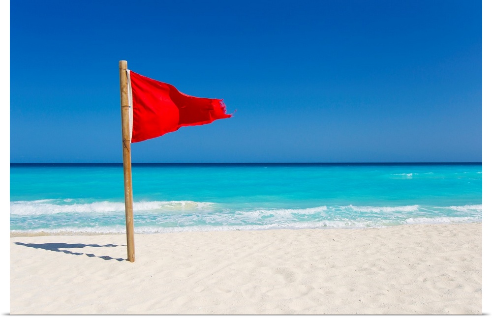 <p>A red flag is posted as a warning of caution on the beaches of Cancun, Mexico.</p>