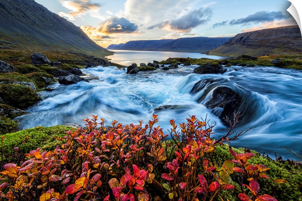 <p>A river flows through the landscape on the West Fjords; Iceland</p>