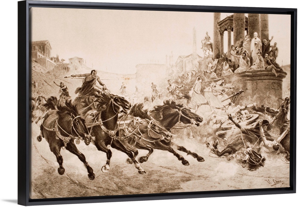 <p>A Roman Chariot Race. From The Picture By U. Checa From The Book "The Outline Of History" By H. G. Wells, Volume 1, Published 1920.</p>