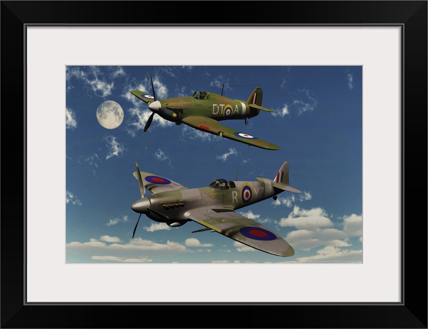 <p>A Royal Air Force Supermarine Spitfire and Hawker Hurricane. These were the two main fighter interceptors used by the Royal Air Force during The Battle of Britain.</p>