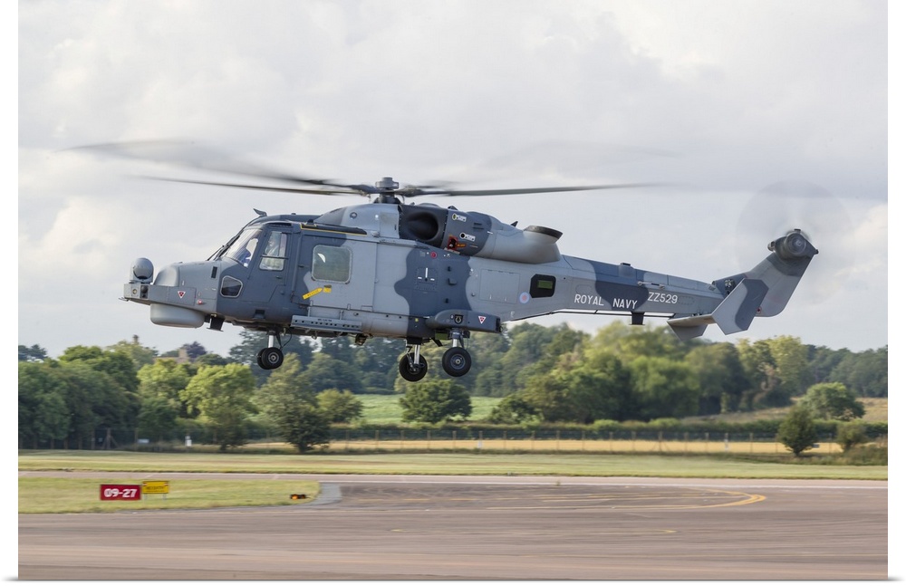 <p>A Royal Navy Wildcat helicopter landing at RAF Fairford in the United Kingdom.</p>