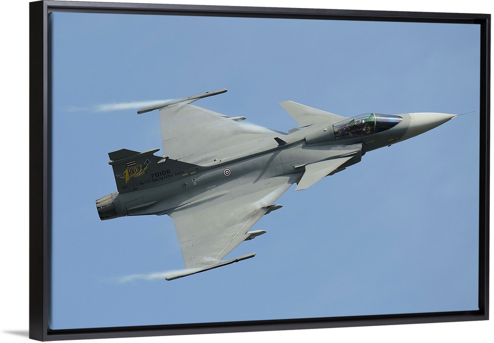 <p>A Saab JAS 39 Gripen C of the Royal Thai Air Force in flight.</p>