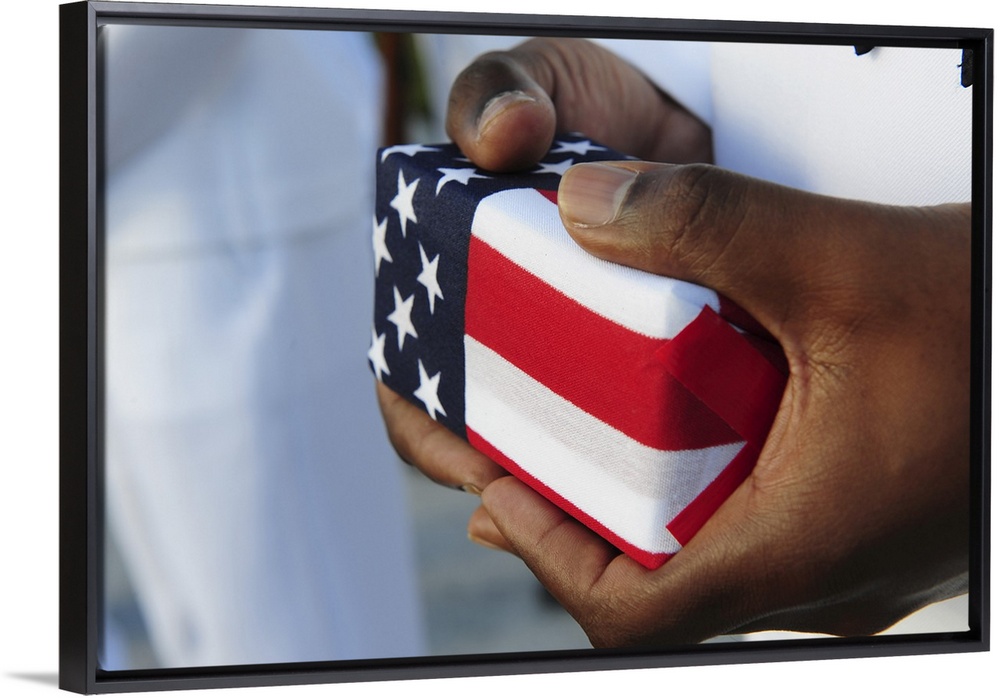 <p>Pearl Harbor, December 7, 2014 - A Sailor from the Joint Base Pearl Harbor-Hickam Honors and Ceremonial Guard holds the ashes of Pearl Harbor survivor Machinist's Mate 2nd Class Harvey E. Smith during an ash scattering ceremony at the USS Utah Memorial held in his honor. Smith was serving aboard USS Ralph Talbot (DD 390) during the Dec. 7, 1941 Japanese attack on Pearl Harbor.</p>