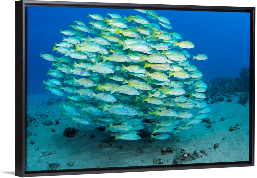 <p>A school of Bluestripe Snapper (Lutjanus kasmira). Maui, Hawaii.</p>