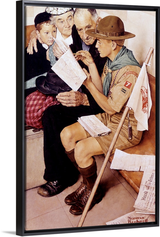 <p>Norman Rockwell's long artistic relationship with the Boy Scouts of America began after he successfully illustrated the Boy Scout Hikebook in the fall of 1912 and lasted until 1976 with Rockwell producing their annual calendar illustrations. Many of the images depict the Scouts learning, teaching, or doing outdoor activities. Approved by the Norman Rockwell Family Agency</p>