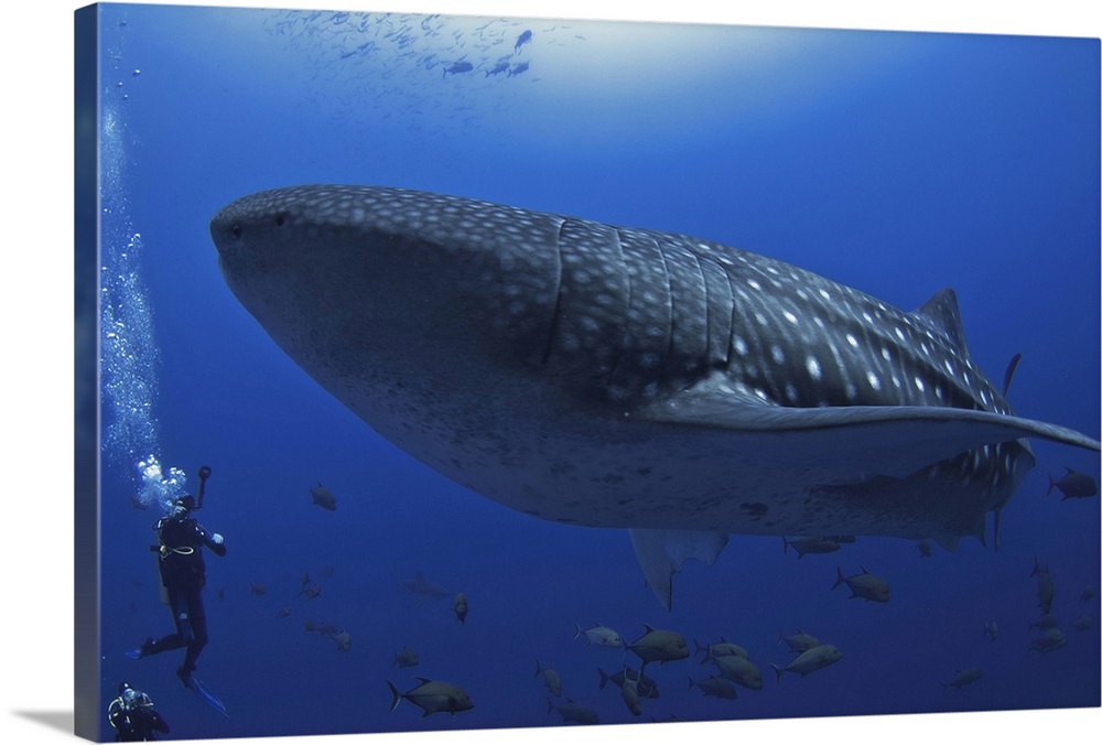 <p>At Roca Partida, Mexico, this gentle whale shark posed for divers in a calm and friendly way.</p>