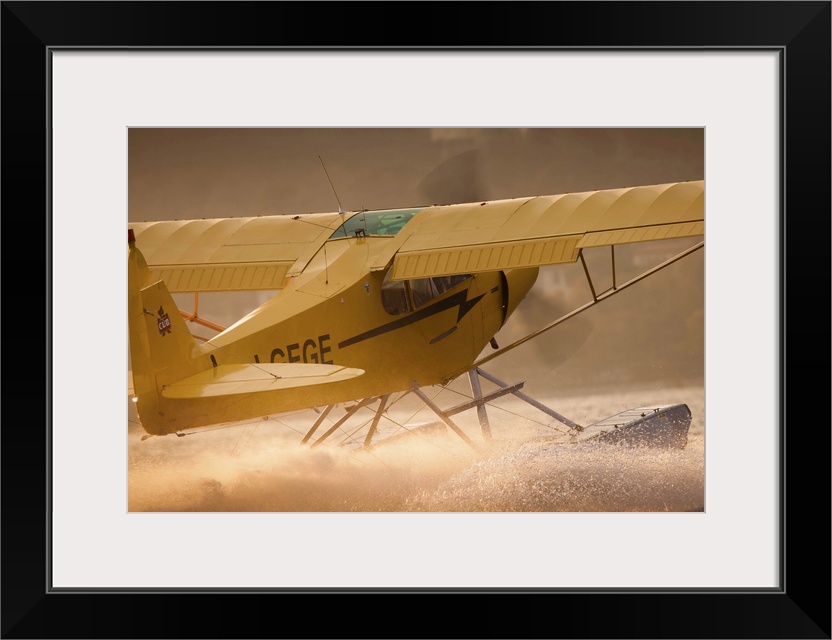 <p>A seaplane taking off in Como Lake at sunset. Lombardy, Italy</p>