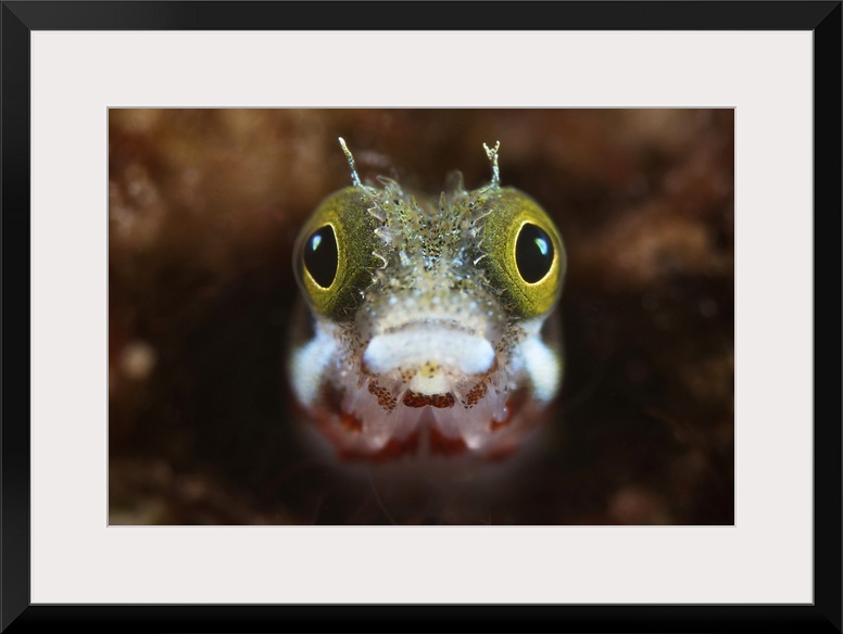 <p>A Secretary Blenny looks out from its coral home, Bonaire, Caribbean Netherlands.</p>