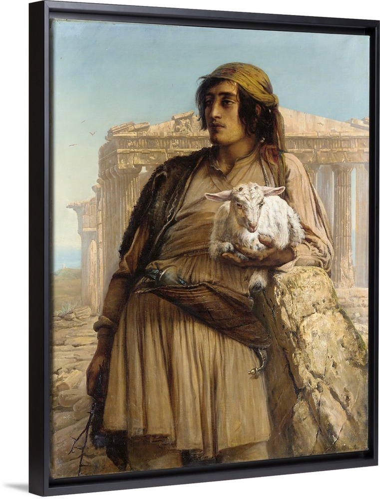 <p>A Shepherd Boy standing before the Parthenon (oil on canvas)</p>