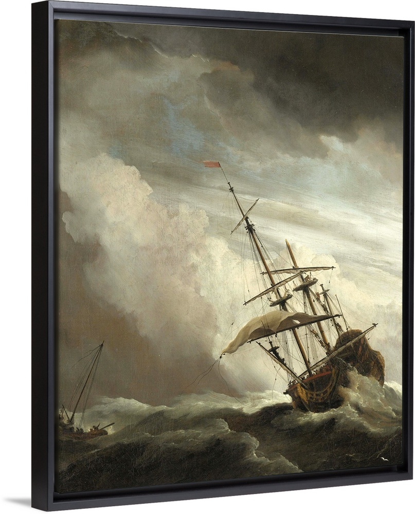 <p>A Ship on the High Seas caught by a Squall, known as the 'Gust', 1680, oil on canvas. By Willem the Younger van de Velde.</p>