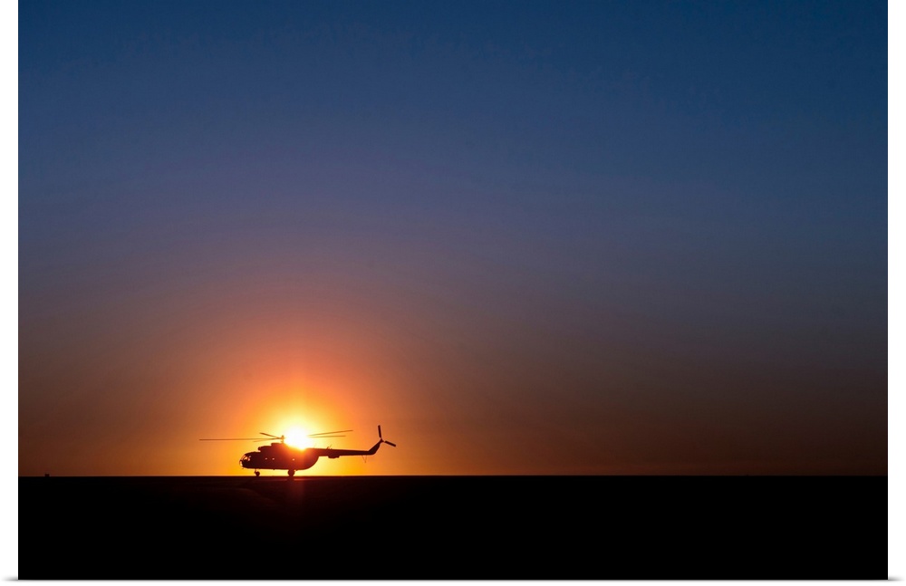 <p>A Sikorsky S-61L Mk II helicopter taxis on the runway during sunrise.</p>