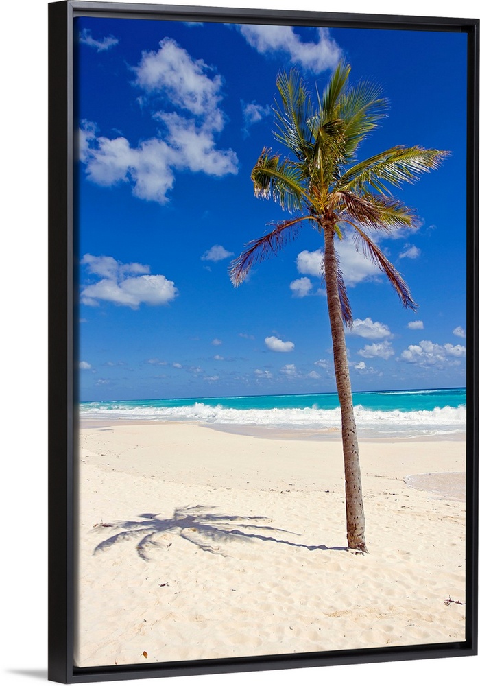 <p>A single palm tree casts a shadow on an amazing Bermuda beach.</p>