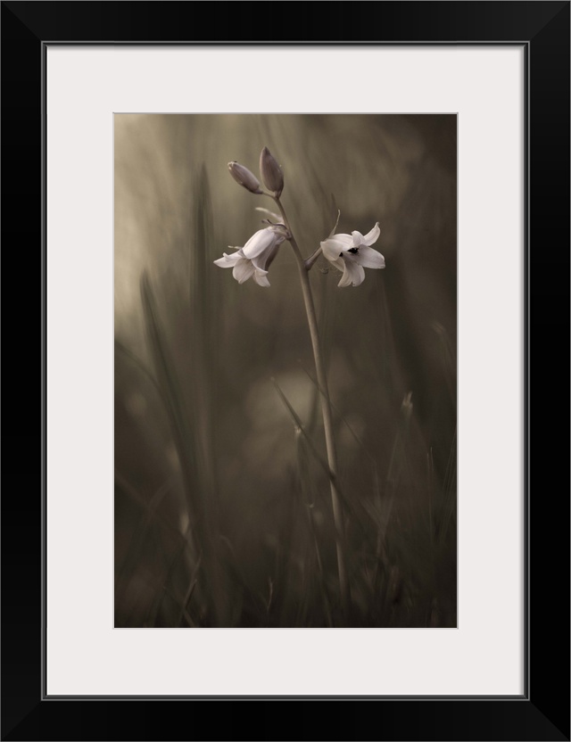 <p>Two small flowers and two buds emerge from the grass.</p>