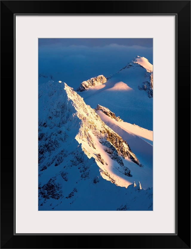<p>A Snow Covered Mountain Covered By Shadows And Sunlight, Kachemak Bay State Park; Alaska, United States Of America</p>
