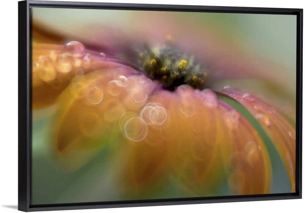 <p>Close-up of an African daisy with water drops on the petals. Photographed with a Helios lens and with large aperture to give this soft expression.</p>