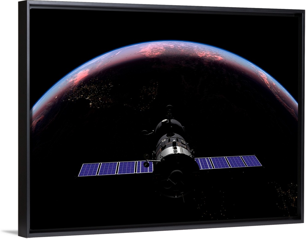 <p>A Soyuz TMA-M spacecraft soars over the Atlantic Ocean at sunset.</p>