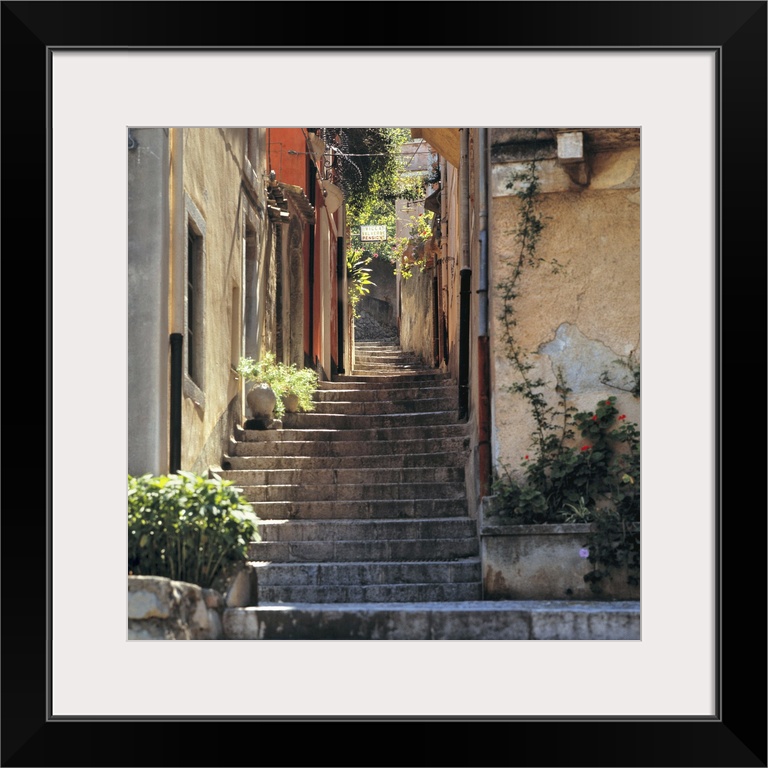 <p>Italy, Sicily, Taormina. A stairway invites walkers to explore Taormina on Sicily, Italy.</p>
