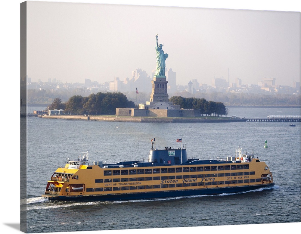<p>A Staten Island ferry passing the Statue of Liberty.</p>