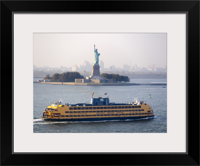 <p>A Staten Island ferry passing the Statue of Liberty.</p>