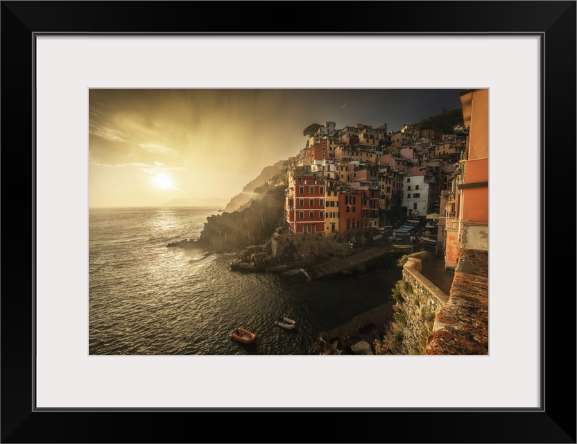 <p>A stormy summer sunset in the town of Riomaggiore, one of the Cinque Terre. Cinque Terre, Italy</p>