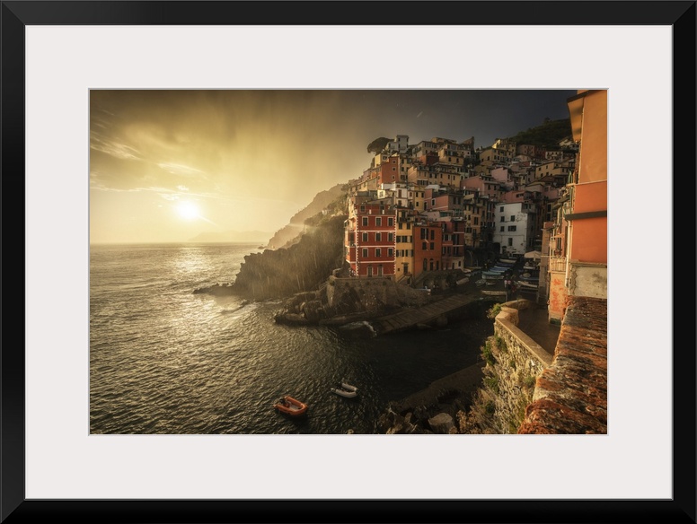 <p>A stormy summer sunset in the town of Riomaggiore, one of the Cinque Terre. Cinque Terre, Italy</p>