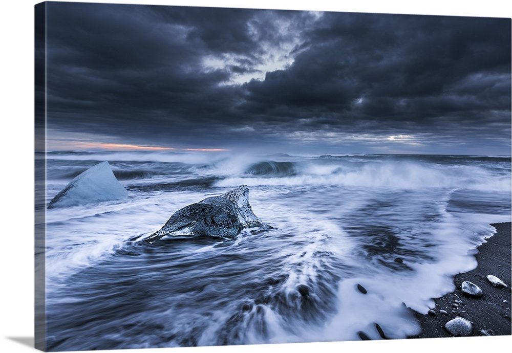 <p>A stranded ice flow on Jokulsarlon black beach, Iceland.</p>