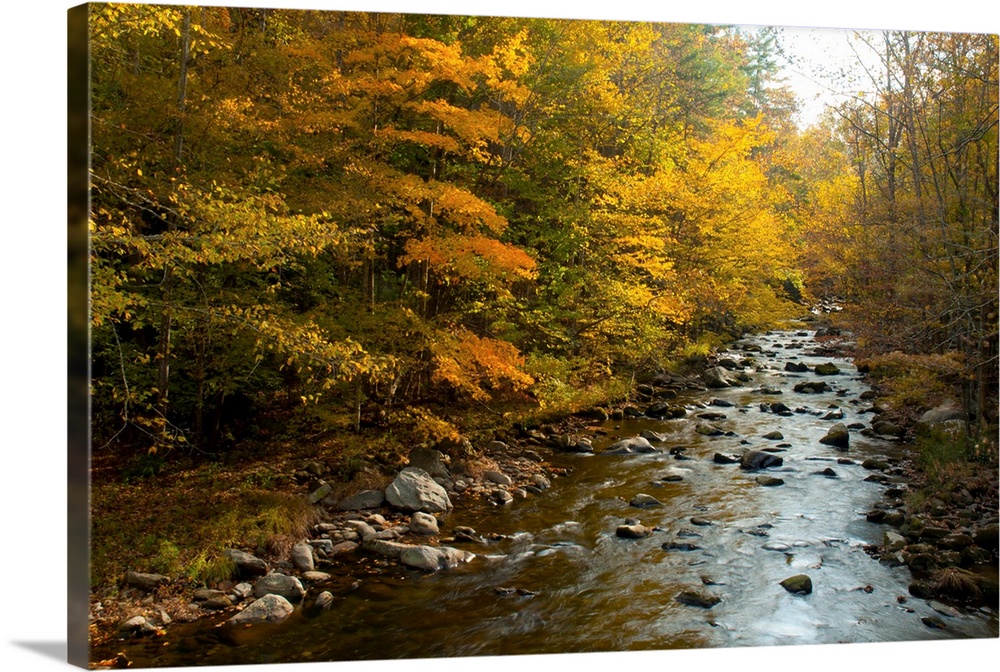 <p>A stream flowing through an autumn-hued forest in the Great Smoky Mountains.</p>