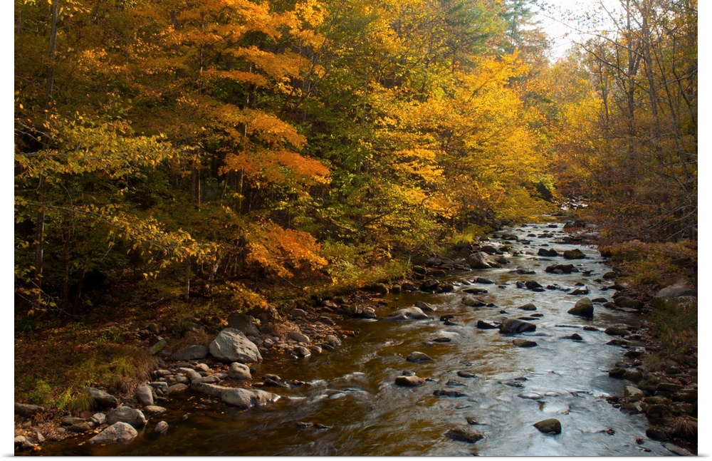 <p>A stream flowing through an autumn-hued forest in the Great Smoky Mountains.</p>