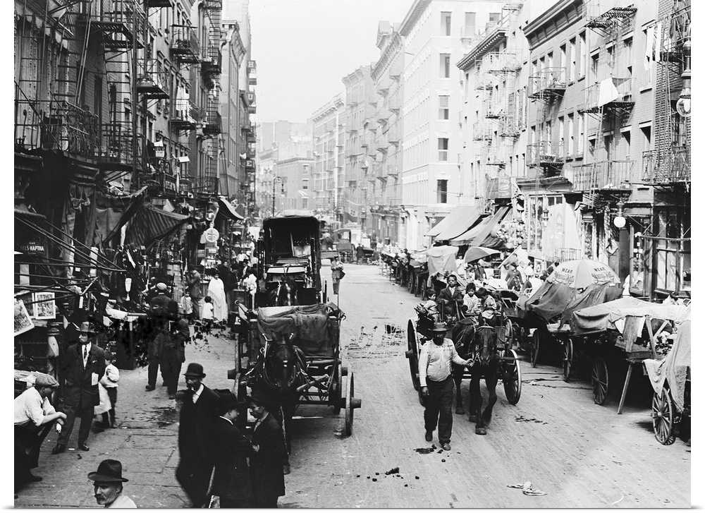 <p>A street market on Mulberry Street in Little Italy, New York City. Photograph, c1905.</p>